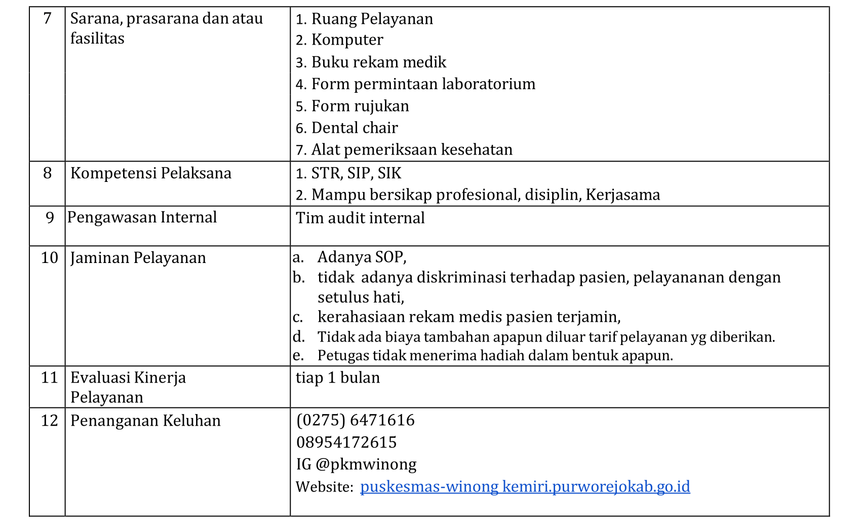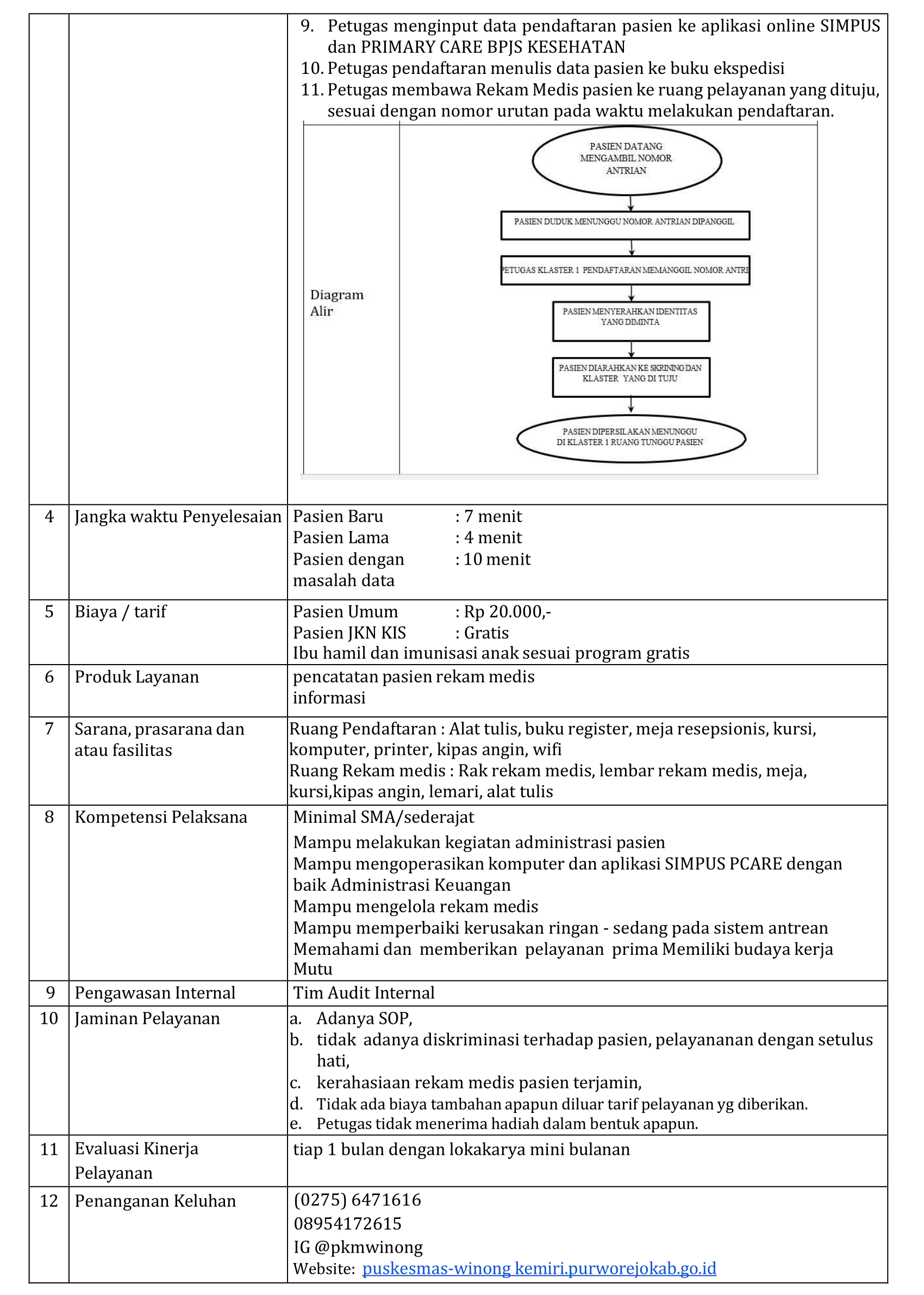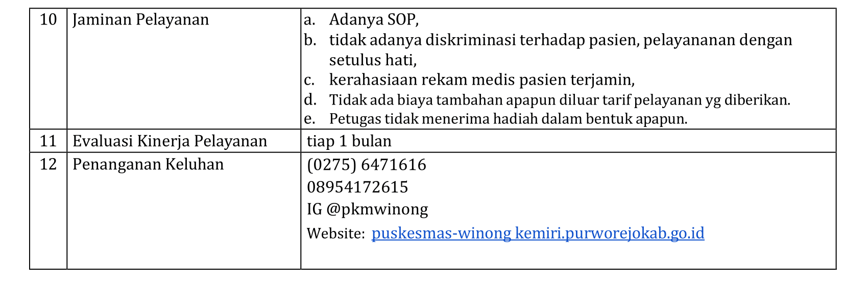 Standar Pelayanan Puskesmas Winong Kemiri